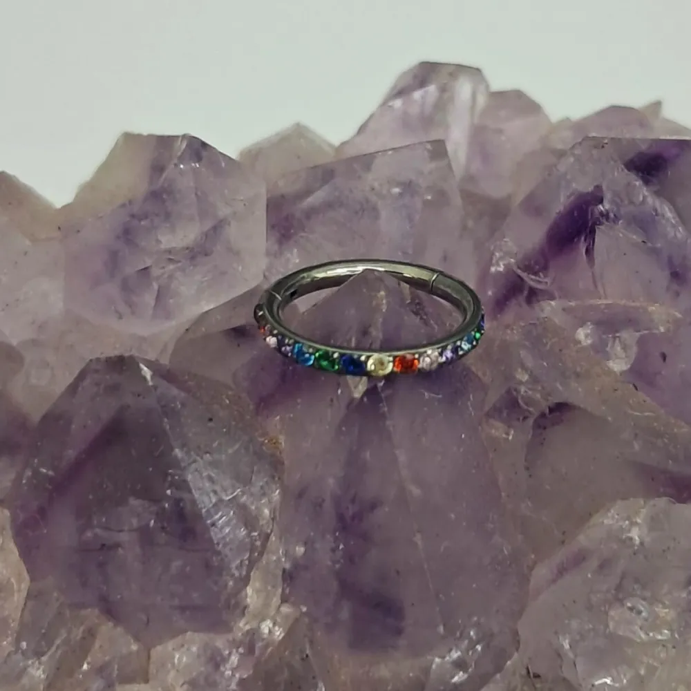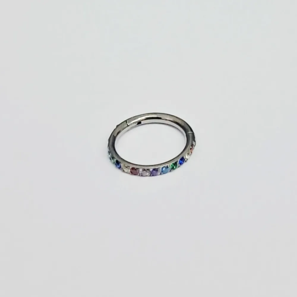 Argola Slim em Titânio CRAVEJADA ZIRCONIA COLORIDA Clicker 1.2mm TIT19