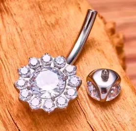 Banana Bell em Titânio MARGARIDA com Pedras (Flor) TIT25
