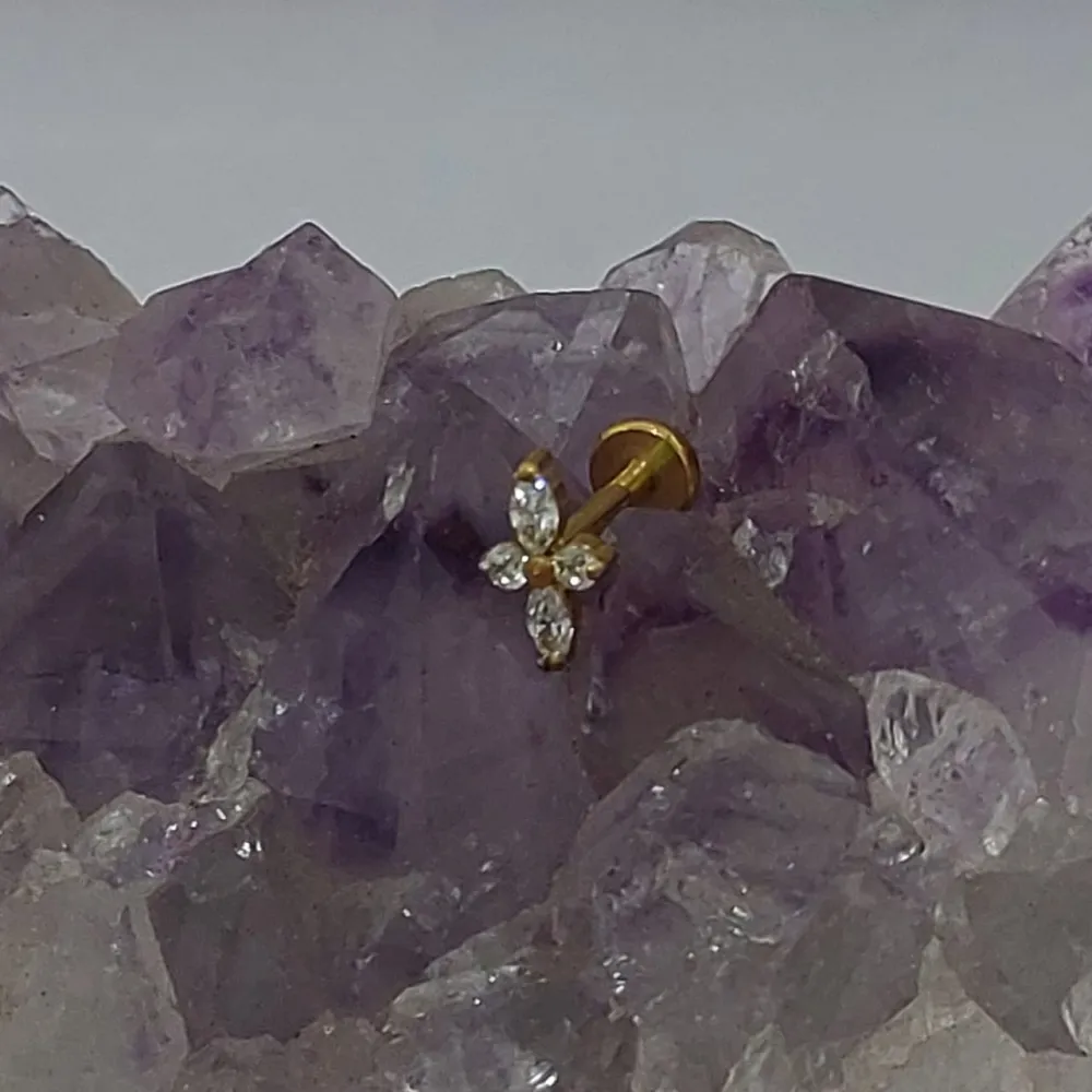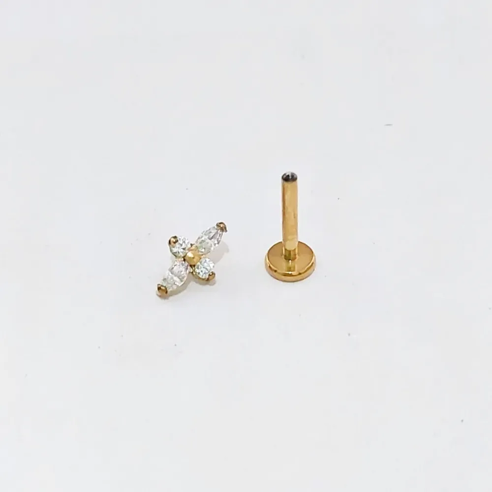 Labret em Titânio PVD DOURADO 1.2mm - Ornamental FLOR com Pedras - TIT20