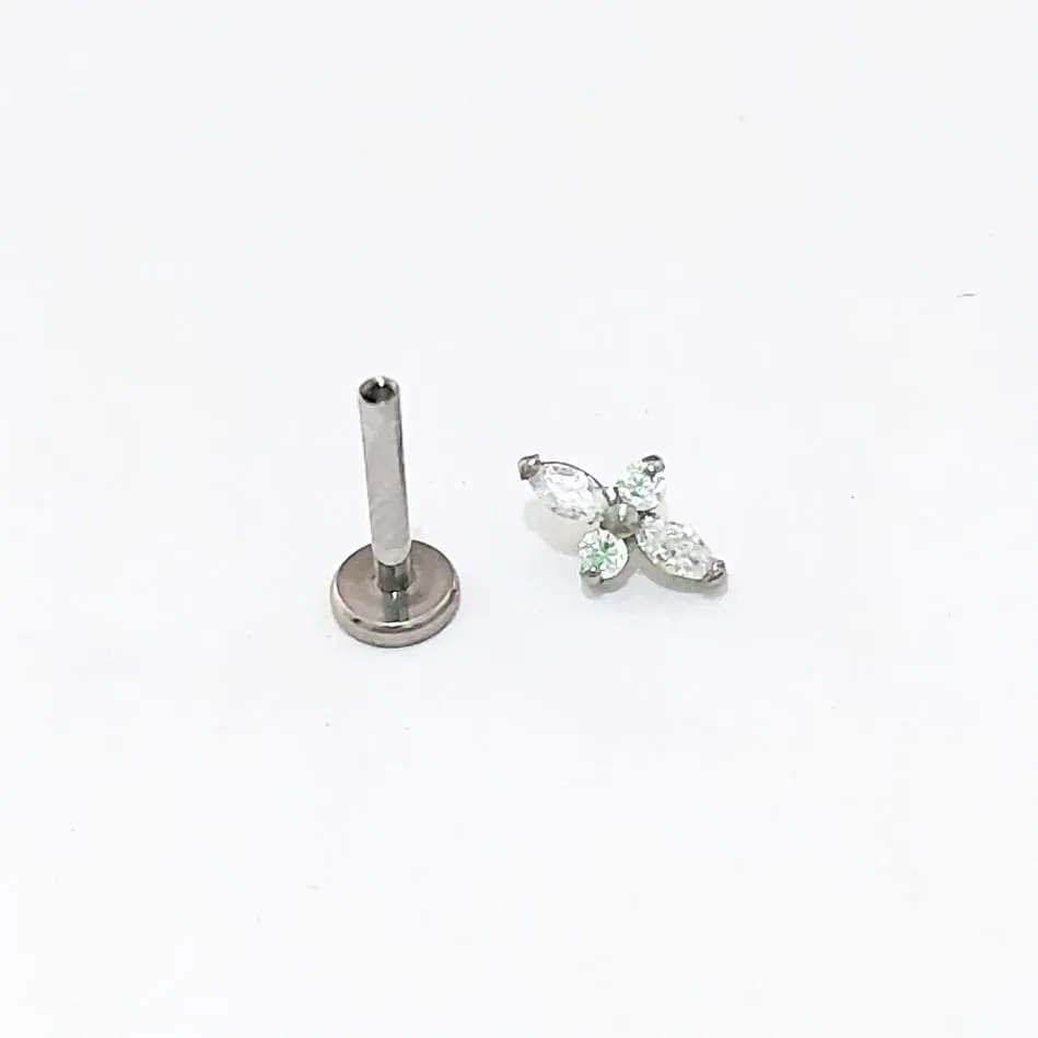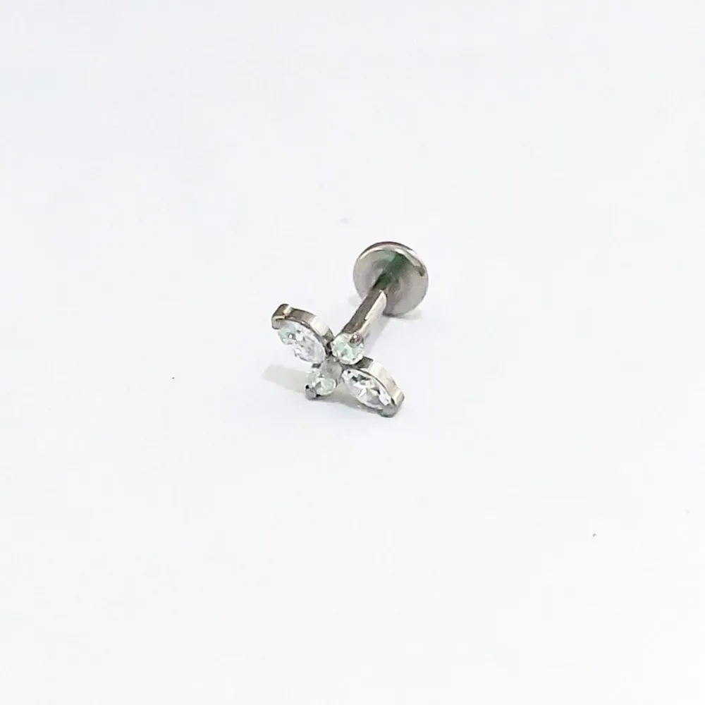 Labret em Titânio Natural Topo Ornamental com pedras